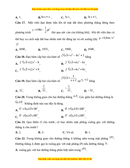Câu 18. Đạo hàm cấp hai của hàm số bằng A. . B. . C. . D. .