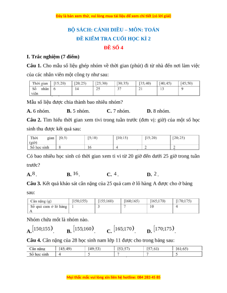 ĐỀ KIỂM TRA CUỐI HỌC KÌ 2 ĐỀ SỐ 4