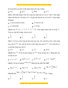 nhiên một tấm thẻ. Xét biến cố A “ Số ghi trên tấm thẻ rút ra là số lẻ”. Chọn mệnh đề đúng? A. . B. . C. . D. . Câu 6. Gọi