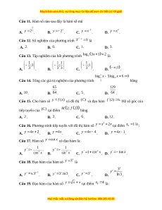 Câu 16. Phương trình tiếp tuyến với đồ thị hàm số tại điểm : A. . B. . C. . D. . Câu 17. Hàm số có đạo hàm là: A. B. C. . D. .