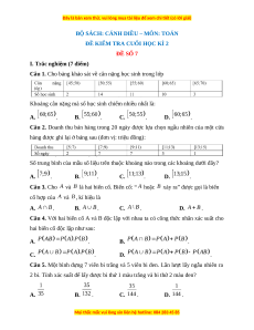 Đề thi cuối kì 2 Toán 11 Cánh diều (Đề 7)
