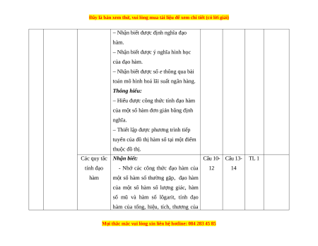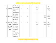 Đạo hàm. Các 28 quy tắc tính đạo TL 1 2 Đạo hàm 5 4 (9 TN, hàm. Đạo hàm (1,0) 1 TL) cấp hai Biến cố giao và quy tắc nhân 21 xác suất. Biến TL 2 3 Xác suất 4 4 (8 TN, cố hợp và quy (0,5) 1 TL) tắc cộng xác suất 4