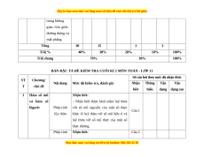 BẢN ĐẶC TẢ ĐỀ KIỂM TRA CUỐI KÌ 2 MÔN TOÁN - LỚP 11