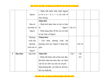 – Nhận biết được hàm số mũ và hàm mũ.Hàm số số lôgarit. Câu 3-4 lôgarit