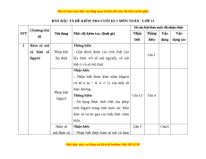 BẢN ĐẶC TẢ ĐỀ KIỂM TRA CUỐI KÌ 2 MÔN TOÁN - LỚP 11