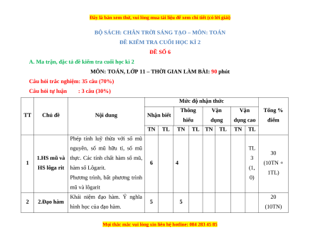 ĐỀ KIỂM TRA CUỐI HỌC KÌ 2 ĐỀ SỐ 6