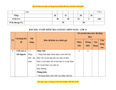 BẢN ĐẶC TẢ ĐỀ KIỂM TRA CUỐI KÌ 2 MÔN TOÁN - LỚP 11