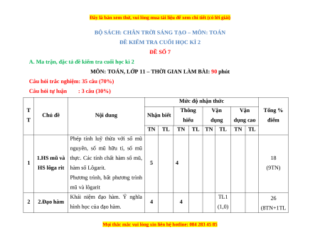 ĐỀ KIỂM TRA CUỐI HỌC KÌ 2 ĐỀ SỐ 7