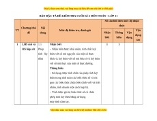 A. Ma trận, đặc tả đề kiểm tra cuối học kì 2