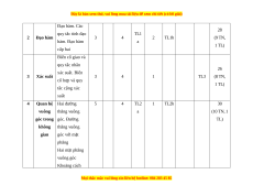 Đạo hàm. Các 28 quy tắc tính đạo TL1 2 Đạo hàm 3 4 2 TL1b (9 TN, hàm. Đạo hàm a 1 TL) cấp hai Biến cố giao và quy tắc nhân 26 xác suất. Biến 3 Xác suất 3 4 1 TL3 (8 TN, cố hợp và quy 1 TL) tắc cộng xác suất 4
