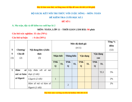 - Tailieugiaovien.com.vn giới thiệu bộ 10 đề cuối kì 2 gồm đầy đủ ma trận và lời giải chi tiết môn Toán 11 Kết nối tri thức mới nhất năm 2023 - 2024 nhằm giúp Giáo viên có thêm tài liệu tham khảo ra đề thi Toán 11.