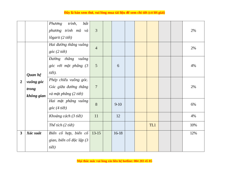 Khoảng cách (3 tiết) 11 12 4% Thể tích (2 tiết) TL1 10% 3 Xác suất