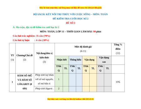 - Tailieugiaovien.com.vn giới thiệu bộ 10 đề cuối kì 2 gồm đầy đủ ma trận và lời giải chi tiết môn Toán 11 Kết nối tri thức mới nhất năm 2023 - 2024 nhằm giúp Giáo viên có thêm tài liệu tham khảo ra đề thi Toán 11.