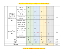 Câu hỏi tự luận : 4 câu (30%) Tổng % Mức độ đánh giá điểm (4-11) Nội dung/đơn vị (12) TT Chương/Chủ đề kiến thức Vận dụng (1) (2) Nhận biết Thông hiểu Vận dụng (3) cao TNK TNK TNK TNK TL TL TL TL Q Q Q Q