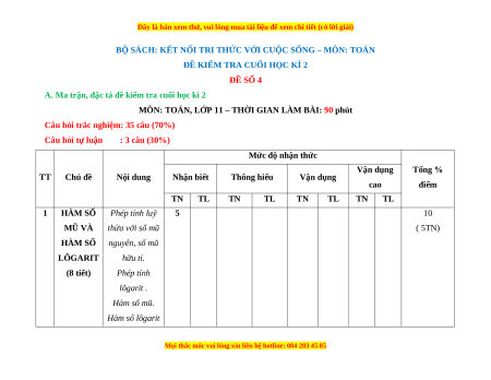 ĐỀ KIỂM TRA CUỐI HỌC KÌ 2 ĐỀ SỐ 4