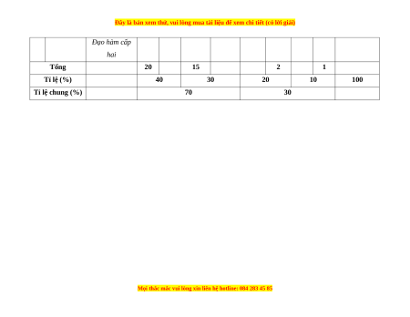 Đạo hàm cấp hai Tổng 20 15 2 1 Tỉ lệ (%) 40 30 20 10 100 Tỉ lệ chung (%) 70 30