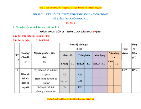 - Tailieugiaovien.com.vn giới thiệu bộ 10 đề cuối kì 2 gồm đầy đủ ma trận và lời giải chi tiết môn Toán 11 Kết nối tri thức mới nhất năm 2023 - 2024 nhằm giúp Giáo viên có thêm tài liệu tham khảo ra đề thi Toán 11.