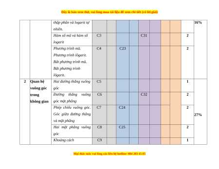 Góc giữa đường thẳng 27% và mặt phẳng Hai mặt phẳng vuông C8 C25 2 góc Khoảng cách C9 1