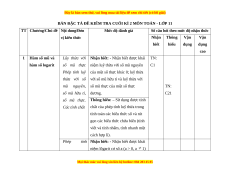 Nội dung/đơn vị kiến (4-11) câu điểm (1) Chủ đề thức Nhận biết Thông hiểu Vận dụng Vận dụng (12) (2) (3) cao TNKQ TL TNKQ TL TNK TL TNK TL Q Q 1