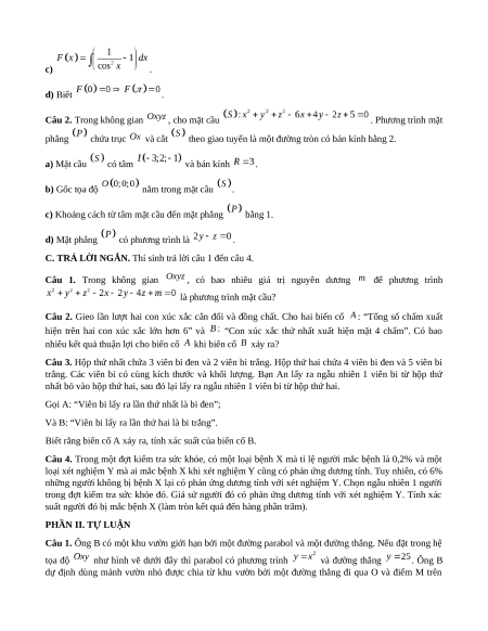 – Dạng trắc nghiệm trả lời ngắn. Mỗi câu trả lời đúng thí sinh được 0,5 điểm.