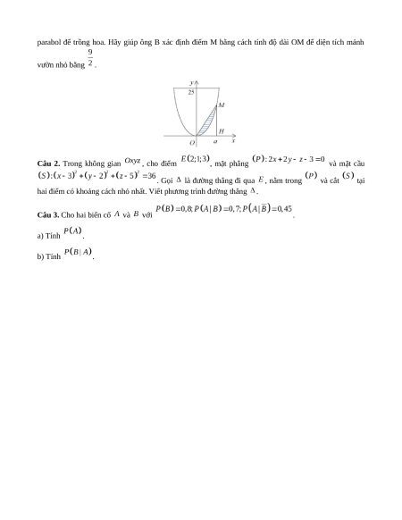 – Tự luận. Thí sinh trình bày chi tiết câu trả lời. Mỗi câu trả lời đúng thí sinh được 1,0 điểm.