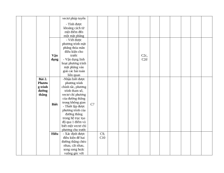 dụng vào giải quyết bài toán thực tiễn - Nhận biết được định nghĩa và các tính chất của tích Bài 3. C1, Biết phân Tích C2 - Giải thích được phân các tính chất cơ bản của tích phân Hiểu - Xác định được