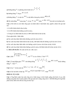 Câu 2. Khi kiểm tra sức khỏe tổng quát của bệnh nhân ở một bệnh viện, người ta được kết quả như sau: