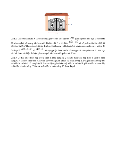 Câu 2. Giả sử quán cafe X lắp wifi được gắn vào hệ trục tọa độ