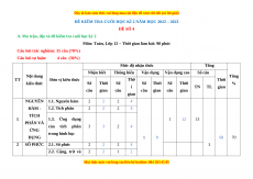 ĐỀ KIỂM TRA CUỐI HỌC KÌ 2 NĂM HỌC 2022 – 2023
