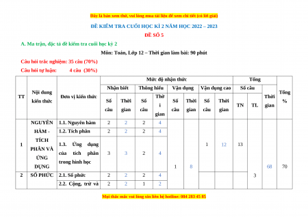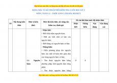 A. Ma trận, đặc tả đề kiểm tra cuối học kỳ 2