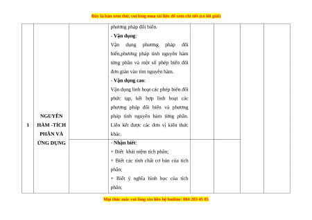 Đơn vị kiến thức Thờ Thời kiến thức Số Thời Số Số Thời Số Thời % i TN TL gian câu gian câu câu gian câu gian gian NGUYÊN 1.1. Nguyên hàm 2 2 2 4 HÀM - 1.2. Tích phân 2 2 2 4 TÍCH 1 1.3. Ứng dụng 1 12 13