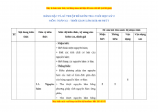 A. Ma trận, đặc tả đề kiểm tra cuối học kỳ 2