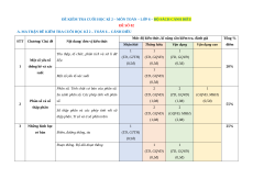 Tổng: Số câu 3 8 6 1 18 Điểm (1,5đ) (4,0đ) (4,0đ) (0,5đ) (10đ) Tỉ lệ 15% 40% 40% 5% 100% Tỉ lệ chung 55% 45%