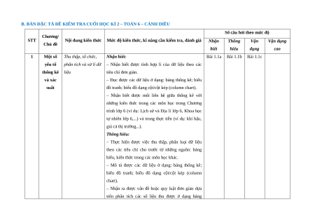B. BẢN ĐẶC TẢ ĐỀ KIỂM TRA CUỐI HỌC KÌ 2 – TOÁN 6 – CÁNH DIỀU