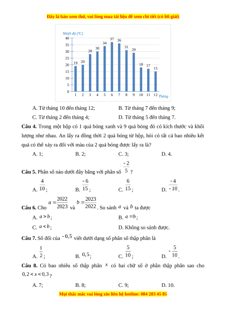Câu 3. Quan sát biểu đồ biểu diễn nhiệt độ trung bình hàng tháng ở một địa phương