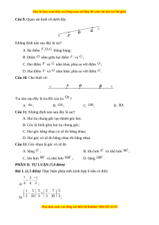 Câu 12. Góc nhọn là góc có số đo A. bằng ; B. lớn hơn và nhỏ hơn ; C. lớn hơn và nhỏ hơn ; D. bằng .