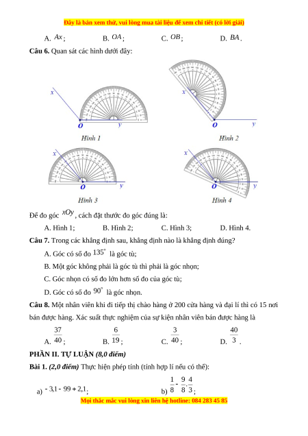 Câu 6. Quan sát các hình dưới đây: Để đo góc