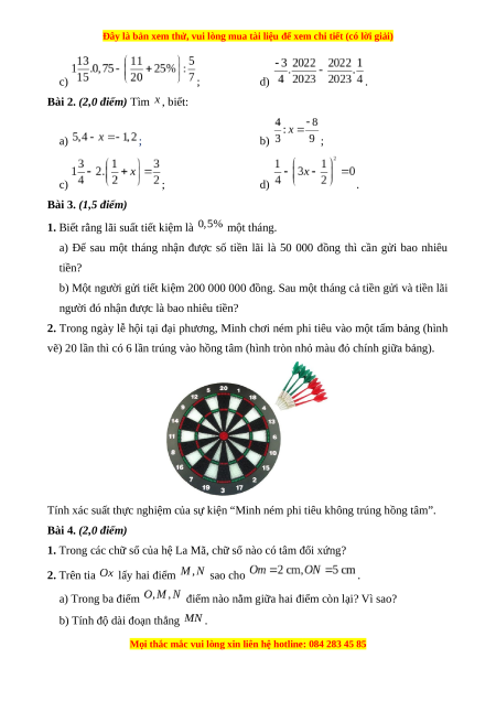Bài 1. (2,0 điểm) Thực hiện phép tính (tính hợp lí nếu có thể): a) ; b) ;