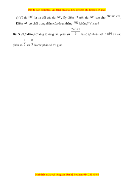 Bài 5. (0,5 điểm) Chứng tỏ rằng nếu phân số là số tự nhiên với thì các