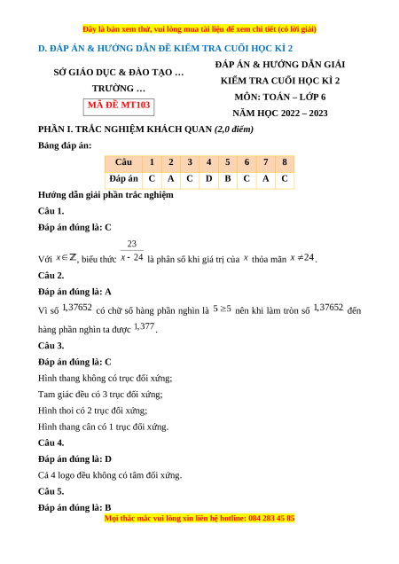 Chúng tôi đảm bảo đủ số lượng đề đã cam kết hoặc có thể nhiều hơn, tất cả có BẢN WORD, LỜI GIẢI CHI TIẾT và tải về dễ dàng.