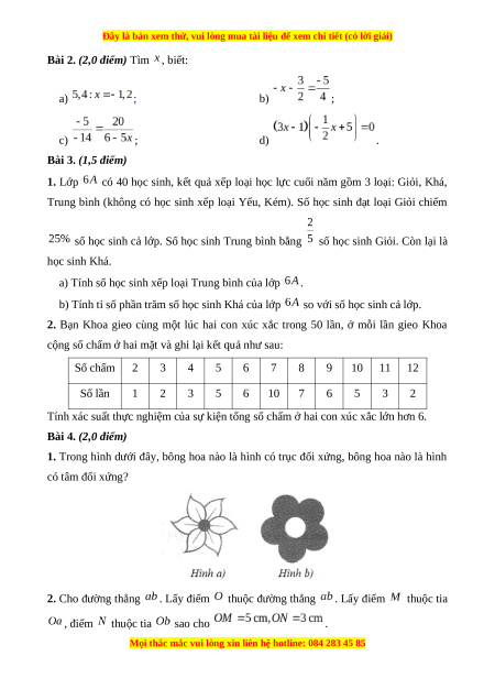 Bài 2. (2,0 điểm) Tìm , biết: a) ; b) ; c) ; d) .