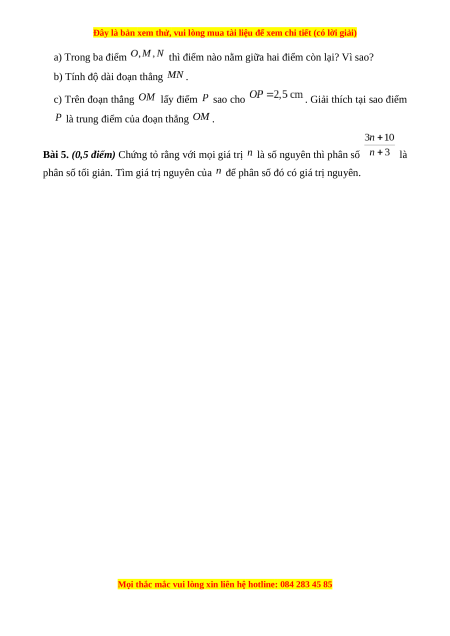 Bài 5. (0,5 điểm) Chứng tỏ rằng với mọi giá trị là số nguyên thì phân số là