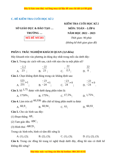 NĂM HỌC 2022 – 2023 MÃ ĐỀ MT203 Thời gian: 90 phút
