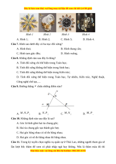 Câu 7. Hình sao dưới đây có ba trục đối xứng? A. Hình thoi; B. Hình thang cân; C. Hình tam giác đều; D. Hình vuông.