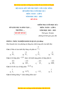 - Tailieugiaovien.com.vn giới thiệu bộ 10 đề thi cuối kì 2 môn Toán 6 bộ Kết nối tri thức mới nhất năm 2022 - 2023 nhằm giúp Giáo viên có thêm tài liệu tham khảo ra đề thi Toán lớp 6.