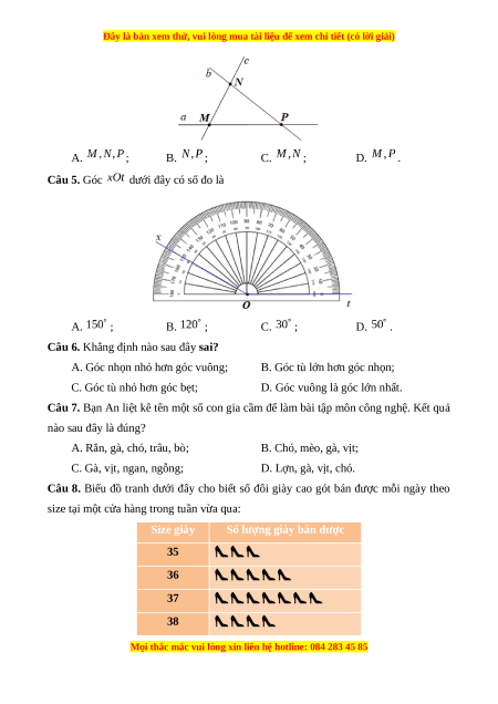 A. ; B. ; C. ; D. . Câu 5. Góc