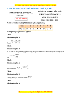 NĂM HỌC 2022 – 2023 MÃ ĐỀ MT101 Thời gian: 90 phút