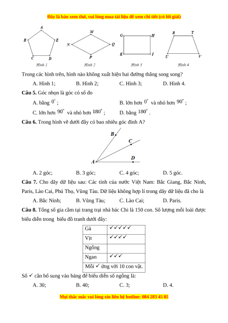 Câu 6. Trong hình vẽ dưới đây có bao nhiêu góc đỉnh A? A. 2 góc; B. 3 góc; C. 4 góc; D. 5 góc.