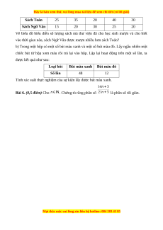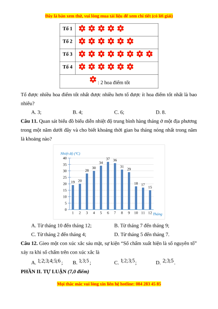 Câu 12. Gieo một con xúc xắc sáu mặt, sự kiện “Số chấm xuất hiện là số nguyên tố”