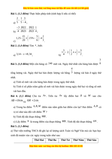 Bài 1. (1,5 điểm) Thực hiện phép tính (tính hợp lí nếu có thể): a) ; b) ; c) .